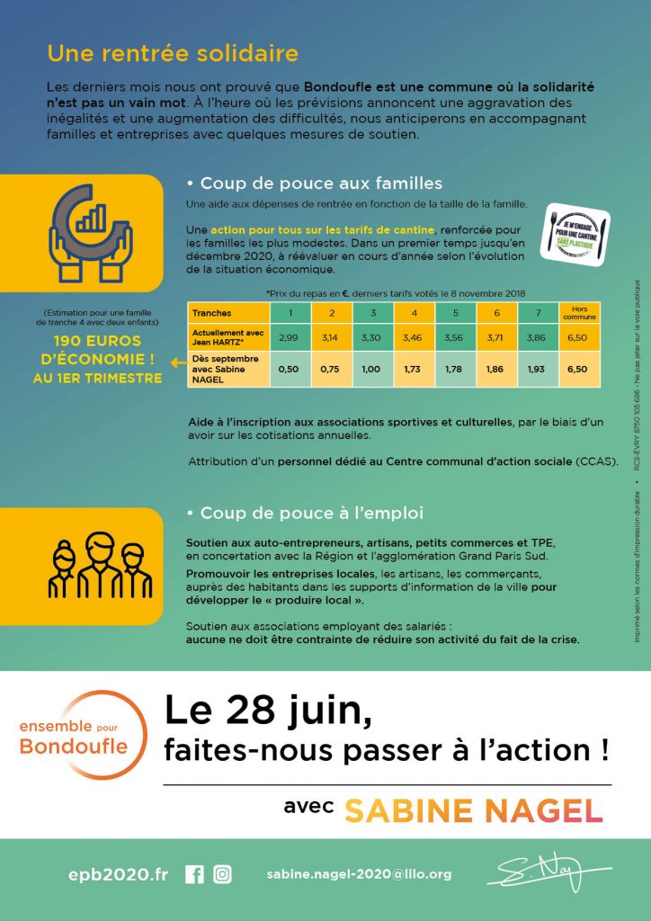 | Fidèles à la démarche citoyenne engagée depuis des mois, Sabine NAGEL invite tous les citoyens désirant écrire avec nous un nouvel avenir pour notre ville à se mobiliser de nouveau et à nous rejoindre pour cette dernière ligne droite dans le respect de nos différences et nos histoires particulières. Nous souhaitons un large rassemblement autour de notre programme, avec pour but commun : élire des élus de terrain désireux de répondre aux grands enjeux comme aux problèmes du quotidien, et construire ensemble durablement une ville agréable, solidaire et vivante. |